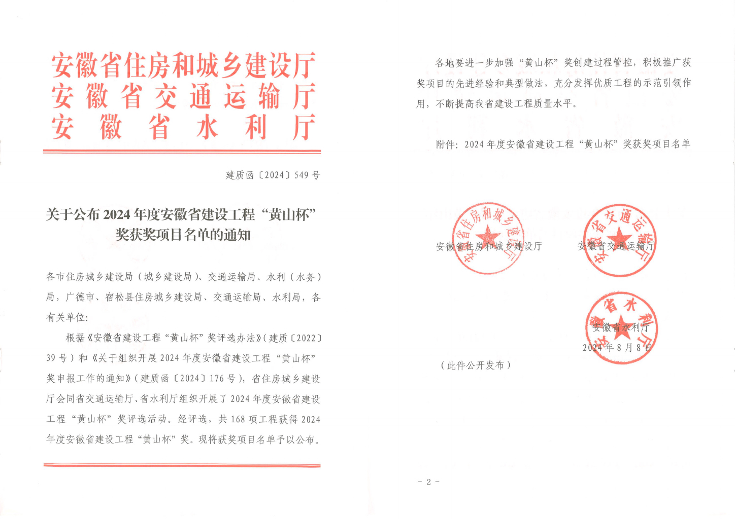 時間:2024-08-27近日,安徽省住房和城鄉(xiāng)建設廳公布了2024年度安徽省建設工程“黃山杯”獲獎名單,安徽池州排水有限公司所承建的“天堂湖污水處理廠工程”位列其中。獲獎項目簡介......