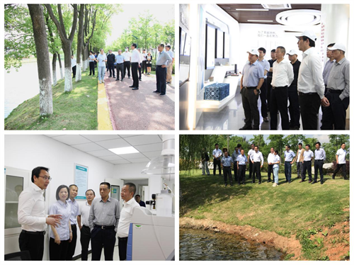 5月24日上午,龔利民一行實地查看了二次供水改造、黑臭水體治理、天堂湖污水廠建設情況,并前往百荷北園參觀了海綿城市展廳,池州項目負責人楊觀樂詳細介紹了廠網站一體化運營模式在池州的實踐,龔利民對各項目現場施工情況、安全防控、風險防范等進行詳細調研并提出指導意見。